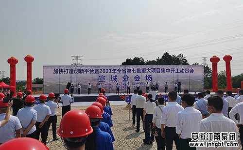 7月31日上午,加快打造創新平臺暨全省第七批重大項目集中開工動員會宣城分會場活動在涇縣經開區駿益智能科技項目地塊舉行.市委書記孔曉宏講話并宣布項目開工,市領導楊業峰...