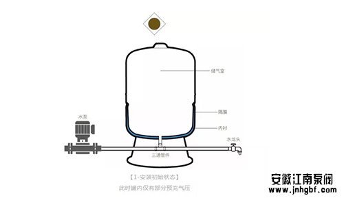 壓力罐內部由橡膠制成的隔膜分為兩部分,一側連接管道,稱為儲水室.另一邊有空氣,叫儲氣室.讓水泵不斷的向罐內儲水,內部空氣被擠壓,儲水量增大,罐內的氣壓也逐漸增大,當增加...
